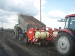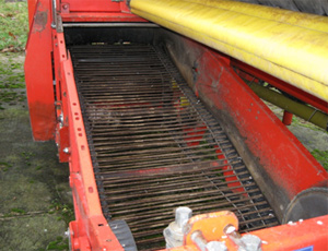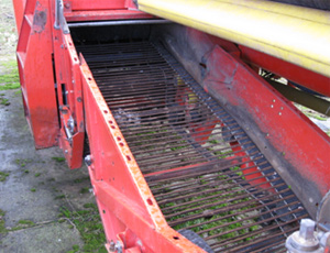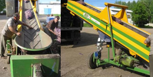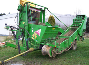 3) KVERNELAND UN 2400 – 2-х рядная машина с прямой загрузкой с загрузочным транспортером. Сортировочный стол, Осевые катки, Электро-гидравлическая система, Поворотные колеса.